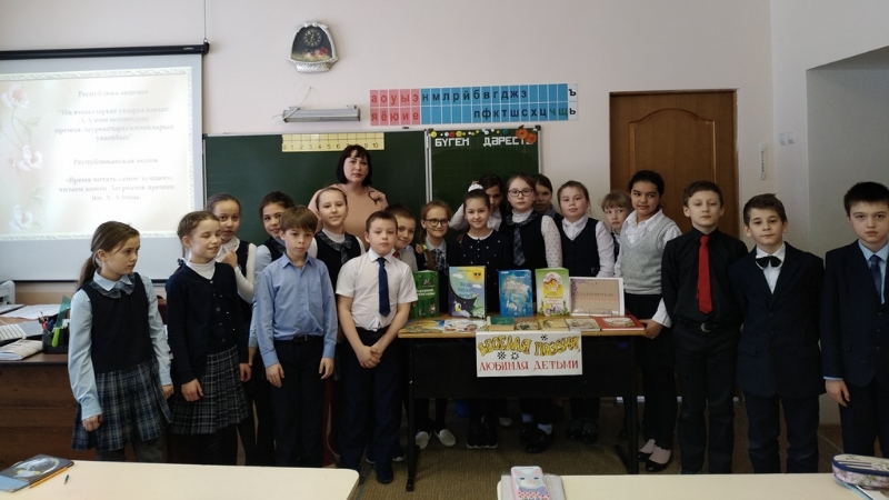 6 март, Бөтендөнья кычкырып уку көнендә, Ю.Гагарин исемендәге Үзәк шәһәр балалар китапханәсе 11нче гимназиянең 4А сыйныф укучылары белән бергә «Иң яхшысын укырга вакыт» Республика акциясенә кушылды. Акцияне «Республика балалар китапханәсе» ТР ДБУК оештыра. Акциянең максаты -Татарстан Республикасы язучыларының балалар һәм яшүсмерләр өчен иң яхшы әсәрләрен популярлаштыру. Акциядә «Балалар яраткан күңелле шигырь» дип исемләнгән китап күргәзмәсе әзерләнде, анда А. Алиш премиясе лауреатлары китаплары тәкъдим ителде.Акция барышында балалар Л. Ихсанова иҗаты белән таныштылар, аның татар телендә:«Бүләк», «Очты, очты», «Казан кунагы», «Наил һәм Фаил» повестьларыннан өзекләр укылды.