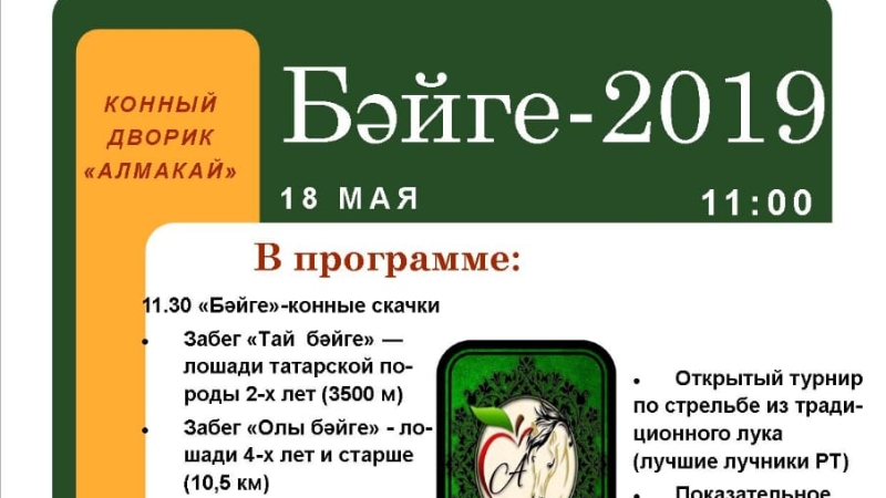 Ат чабышлары 18 май көнне 11.00 сәгатьтә башлана.
