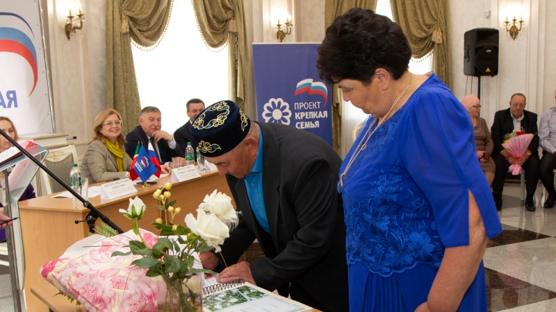 Бу көнне искиткеч бу гаилә туганнары һәм якыннарыннан бик күп җылы сүзләр кабул итте. Гореф-гадәт буенча юбилярлар Татарстан Республикасы Лениногорск районы гаилә тормышын билгеләп үтүче юбилярларының мактаулы китабына имзаларын куйдылар, анда аларның исемнәре кертелде.