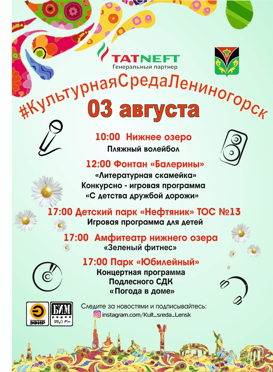 3 августта "Шәһәрнең мәдәни мохите" сезне кунакка чакыра. Чаралар сәгать 10 да башлана. Рәхим итегез!