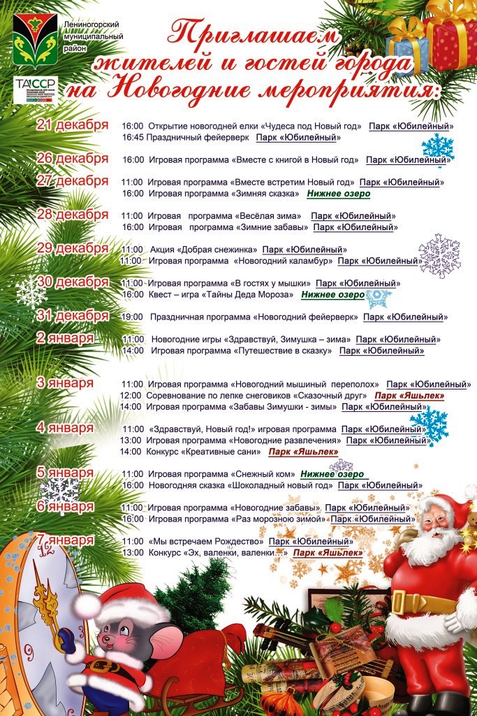 Яңа ел каникулларына бәйрәм чаралары афишасы:
