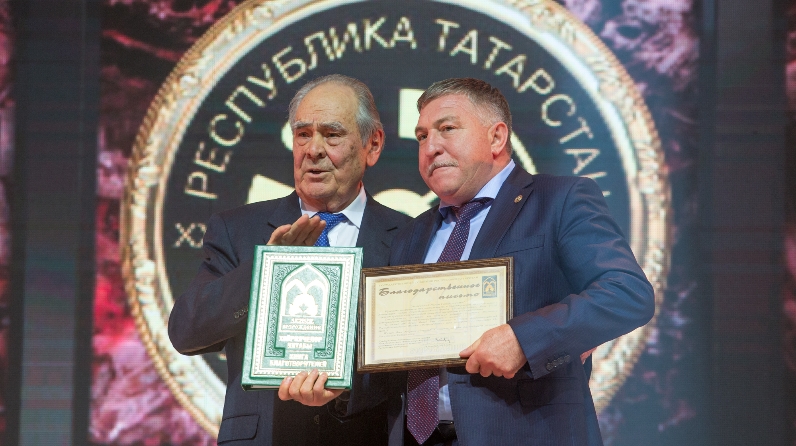 Хәйриячеләр китабының унынчы томы һәм «Яңарыш» фондының Рәхмәт хаты Лениногорск районы Башлыгы, Лениногорск шәһәре мэры Рәгать Хөсәеновка тапшырылды.