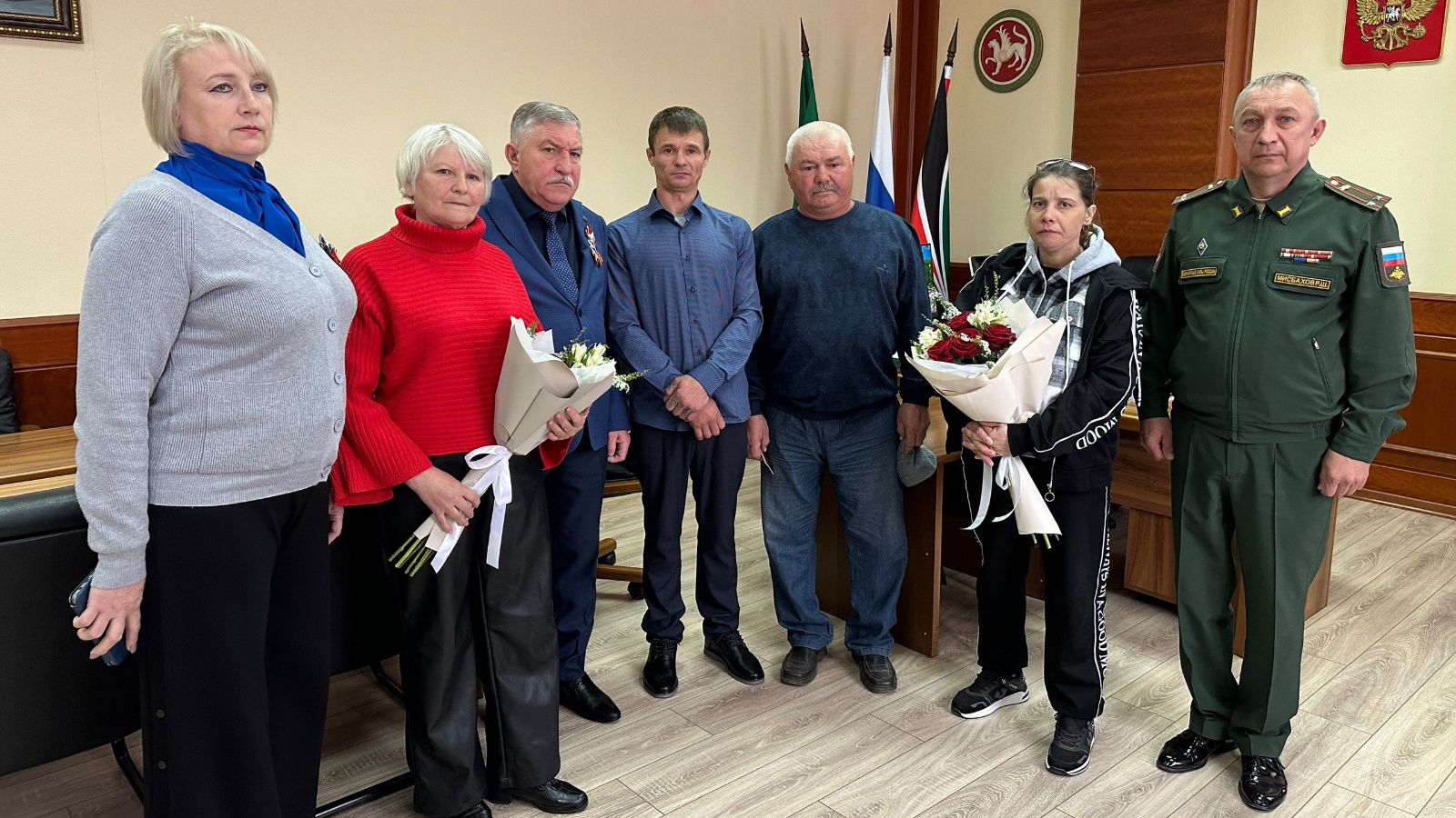 Бүген администрациядә Лениногорск районы Башлыгы Рәгать Хөсәенов һәлак булган лениногорскилыларның гаиләләренә бүләкләргә таныклыклар тапшырды.