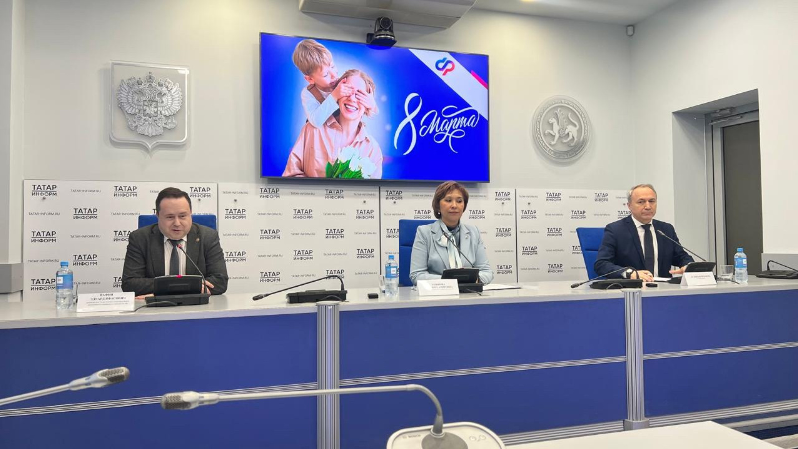Татарстан Республикасы буенча Россия Социаль фонды бүлеге җитәкчесе Эдуард Вафин «ТатарИнформ» Мәгълүмат агентлыгында узган матбугат конференциясендә балалы гаиләләргә ярдәм итү чаралары турында доклад белән чыгыш ясады.