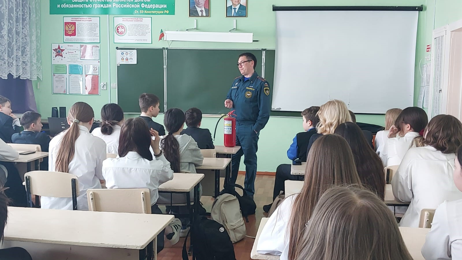 Шундый дәресләрнең берсен Россия гадәттән тыш хәлләр министрлыгының ТР буенча Баш идарәсенең Лениногорск муниципаль районы буенча күзәтчелек эшчәнлеге һәм профилактика эше бүлеге җитәкчесе Вилданов Дамир Равил улы «5 нче урта гомуми белем бирү мәктәбе»муниципаль бюджет гомуми белем бирү учреждениесендә үткәрде.