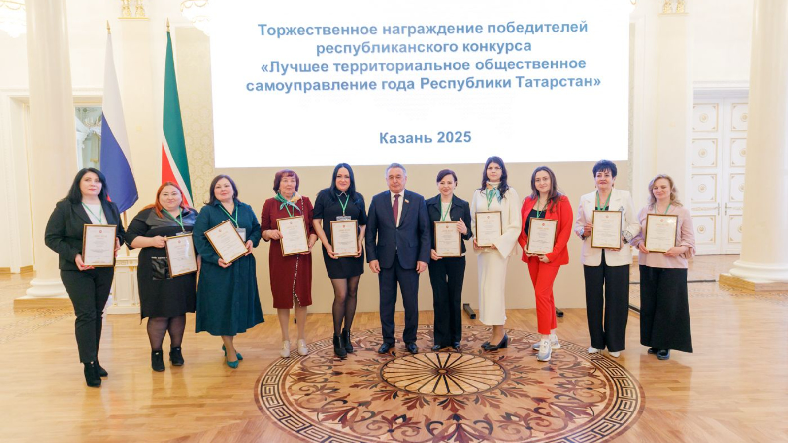 Казан Ратушасында 2024 ел йомгаклары буенча «Татарстан Республикасының иң яхшы ел территориаль иҗтимагый үзидарәсе» республика конкурсында җиңүчеләрне һәм призерларны бүләкләү тантанасы булды.