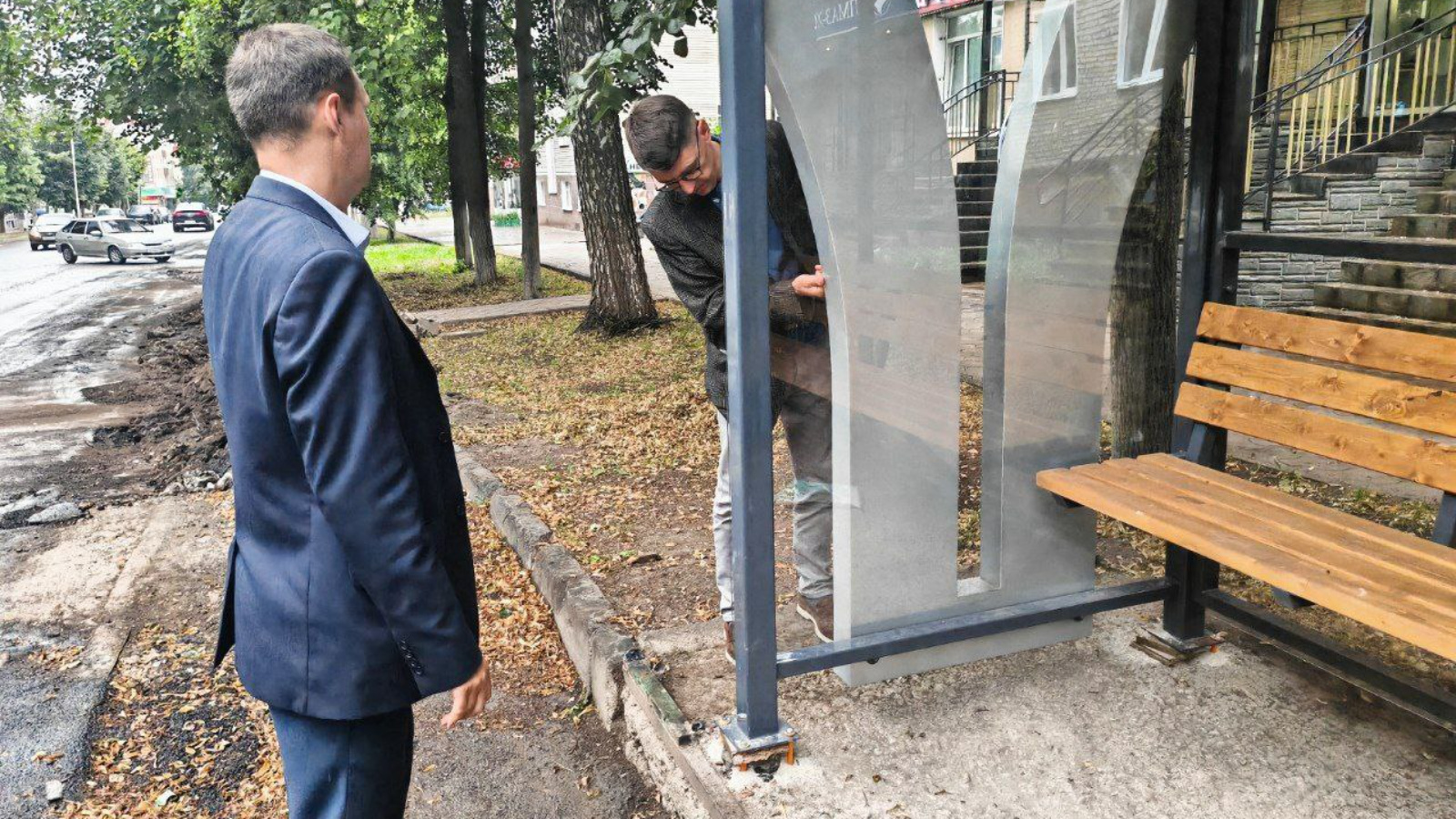 Лениногорск районы башкарма комитеты җитәкчесе Марат Гыйрфанов һәм шәһәр Башкарма комитеты җитәкчесе урынбасары Сергей Семенов Лениногорскида яңа тукталышлар урнаштыруның барышын тикшерделәр.