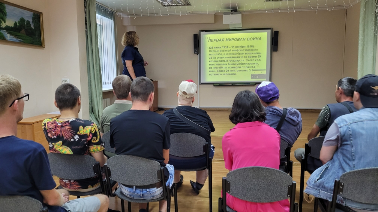 Очрашу барышында социаль педагог катнашучыларны әлеге вакыйганың тарихы белән таныштырды. Бу дата-1914-1918 елларда Ватан өчен көрәшкән тугыз миллионнан артык россияленең батырлыгына һәм фидакарьлегенә хөрмәт күрсәтү. Презентацияне карау барышында катнашучылар сугыш башлануның сәбәпләре, аның нәтиҗәләре турында белделәр.
