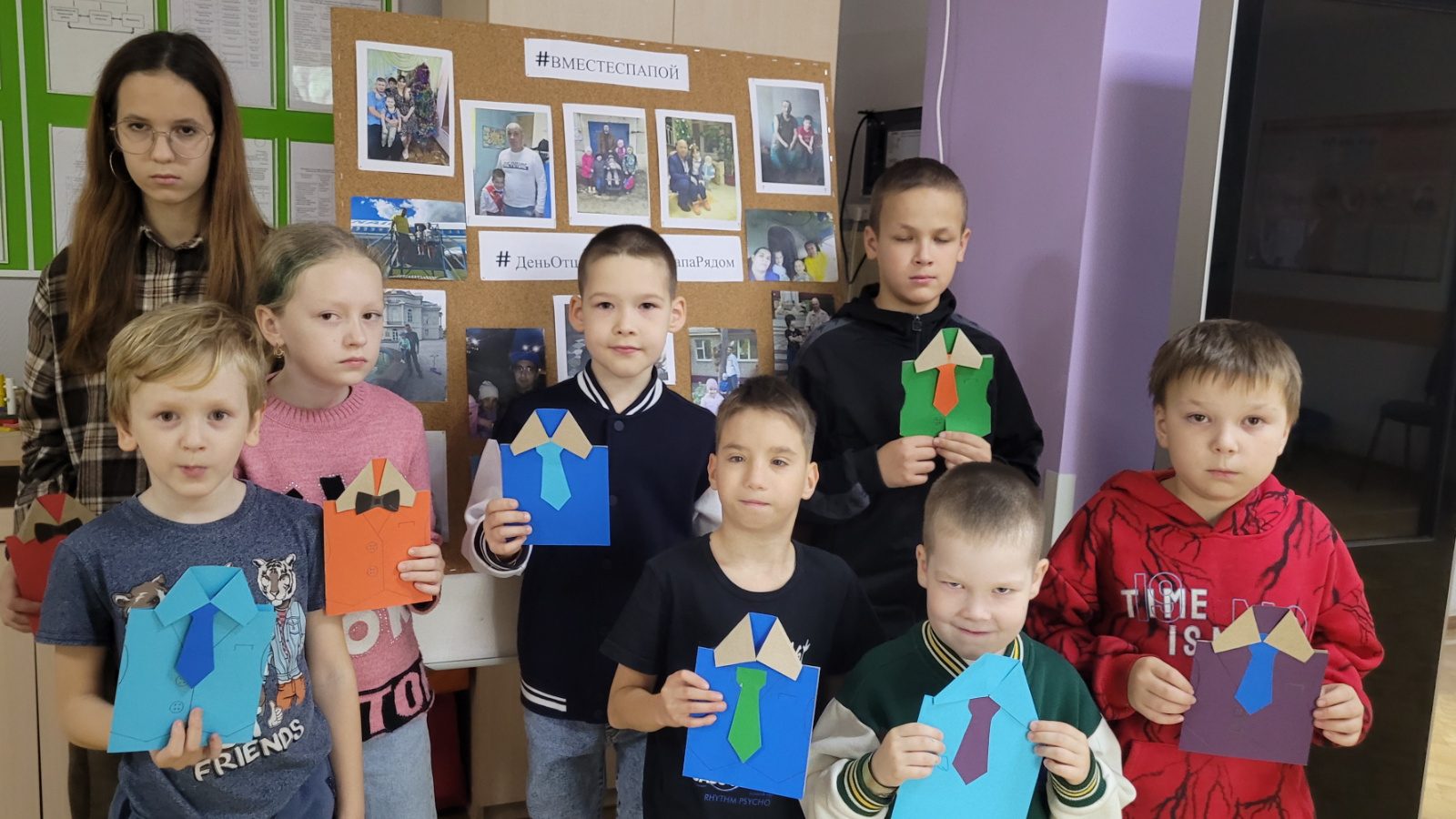 Балалар оригиналь открытка-сюрпризлар ясадылар. Һәр катнашучы үз эшенә күңеленең бер өлешен салды, фантазия һәм иҗат күрсәтте. Үз куллары белән ясалган бүләкләр балаларның әтиләренә карата ярату һәм рәхмәт символына әверелде.