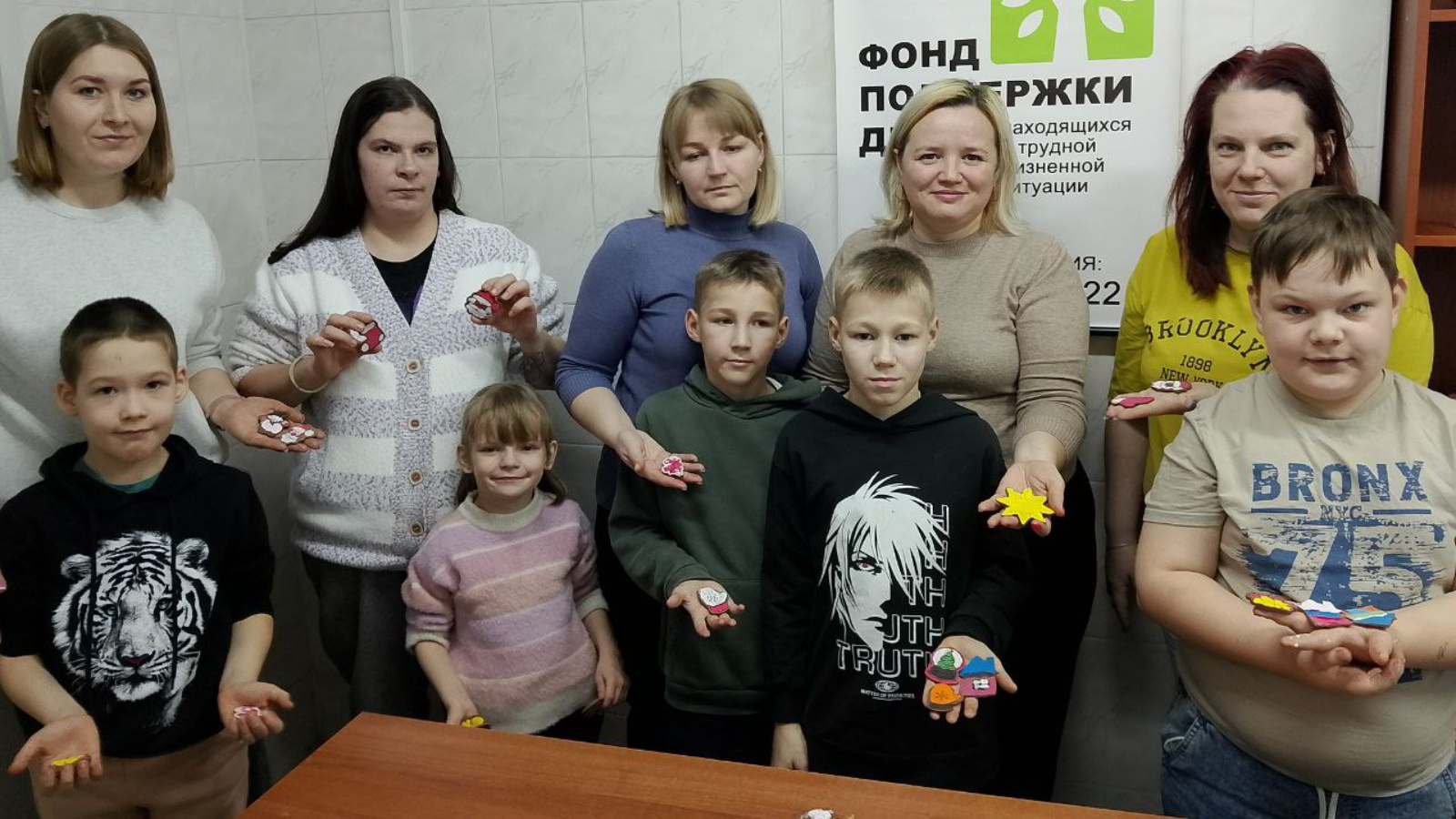 Проектның максаты-балалы гаиләләрдә социаль адаптация һәм финанс мөстәкыйльлеге өчен иҗади һәм эшкуарлык күнекмәләрен үстерү. Чираттагы дәрестә катнашучылар әзер эшләнмәләрне балчыктан буяу техникасын үзләштерделәр.