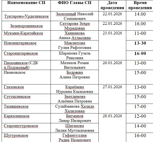 Районның авыл җирлекләрендә яшәүчеләр белән очрашуларның яңартылган графигы: