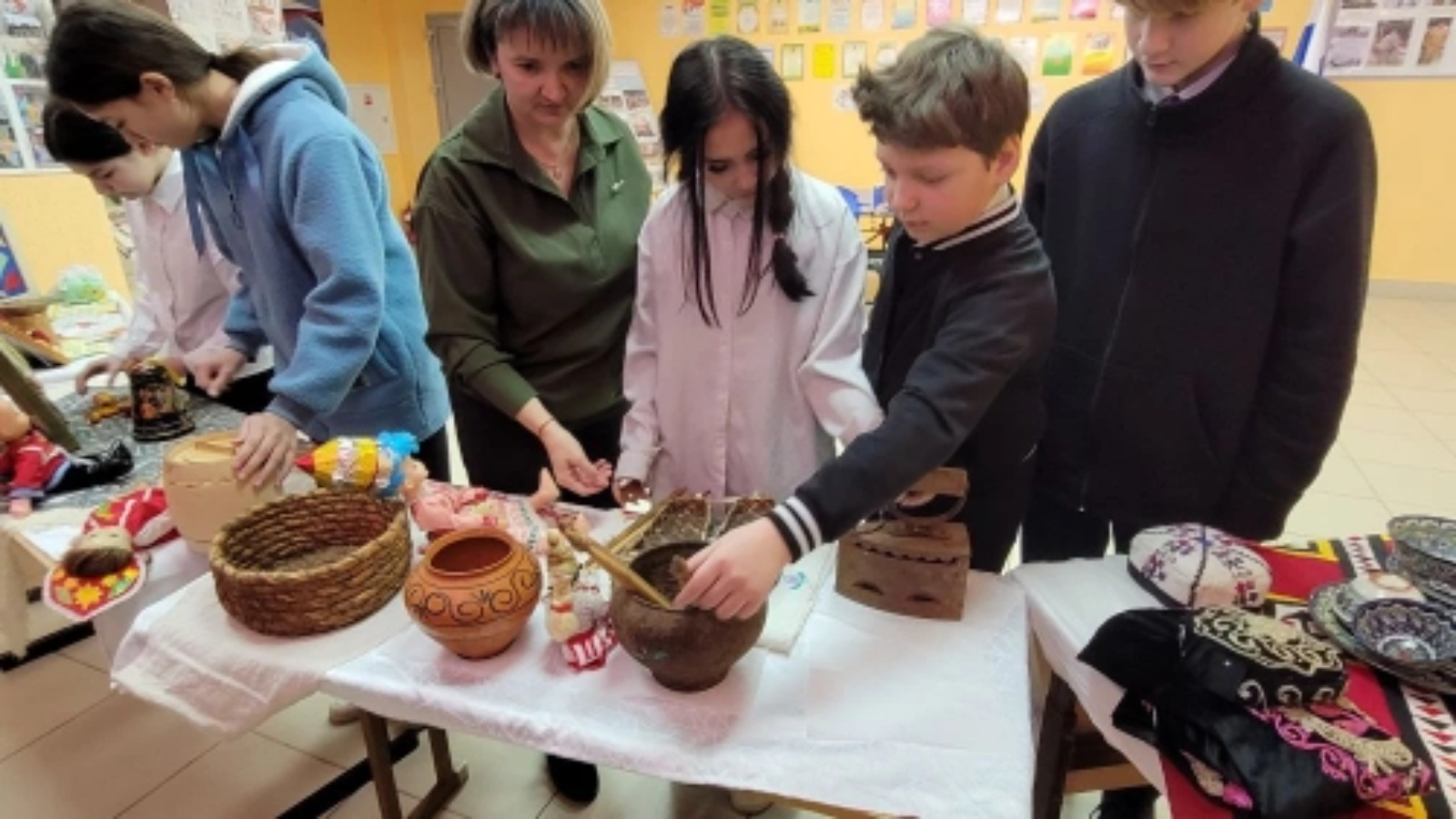 Музейда балалар солдатларның шәхси әйберләрен: хатларны, фотосурәтләрне, бүләкләрне, мемориаль такталарны, сугыш вакытында ирешкән уңышларын раслаучы документларны һәм архив материалларын күрә алдылар. Ата-бабаларыбызның көнкүреше белән таныштык: эш кораллары, борынгы кирәк-яраклар һәм национальиләребез кигән милли киемнәр.
