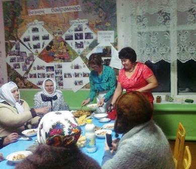 Апаларыбызның моңлы җырлары, дәртле биюләре, шигырь- чыгышлары һәрберебезнең күңеленә шифа булдылар. Үзләренең яшьлек елларын хәтерләрендә яңартып, ничек итеп кич утыруларын, сукыр лампа яктысында сөлге - кульяулыклар чигүләрен, үзләренә бирнәлек әзерләгәннәрен җылы хисләр белән искә алдылар. Уеннар соңында табышмаклар әйтешеп, зирәклектә көч сынаштылар,матур чәй табыныннан соң илебезгә, җиребезгә именлек теләп догалар кылып олы рәхмәт белән авыл урамнарына таралыштылар.