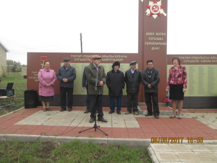 08 мая 2015г. в селе Туктарово-Урдала состоялось открытие обелиска, посвященного ветеранам ВОВ, труженикам тыла, детям войны. На открытии присутствовал представитель из Совета ветеранов.