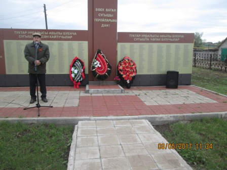 74 года назад пришел на землю долгожданный праздник День Победы. Героическими усилиями солдат Великой Отечественной войны и тружеников тыла была отвоевана независимость нашей родины. Никто не забыл подвиг наших победителей. Память о тех, кто сражался с оружием в руках, кто стоял с ним в обнимку днем и ночью, позабыв об усталости и страхе, будет жить в наших сердцах веками. 8 мая прошел митинг, посвященный Дню Победы в Туктарово-Урдалинском сельском поселении, а так же в деревне Карагай. На митинг был приглашен ветеран Великой отечественной войны Хуснутдинов Касым Гарифович, дети войны, вдовы ветеранов, жители села, учителя, школьники, Глава «Туктарово-Урдалинское сельское поселение» Зиганшин Марат Мансурович, а так же начальник управления образования Сунгатуллин Вагиз Санатгуллович.