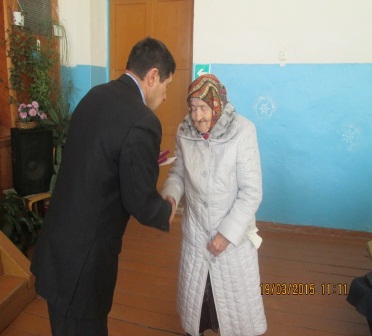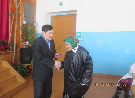 Так же в честь празднования 74 годовщины Великой Отечественной войны местной администрацией были вручены именные подарки участнику войны, тыловикам и вдовам ветеранов.