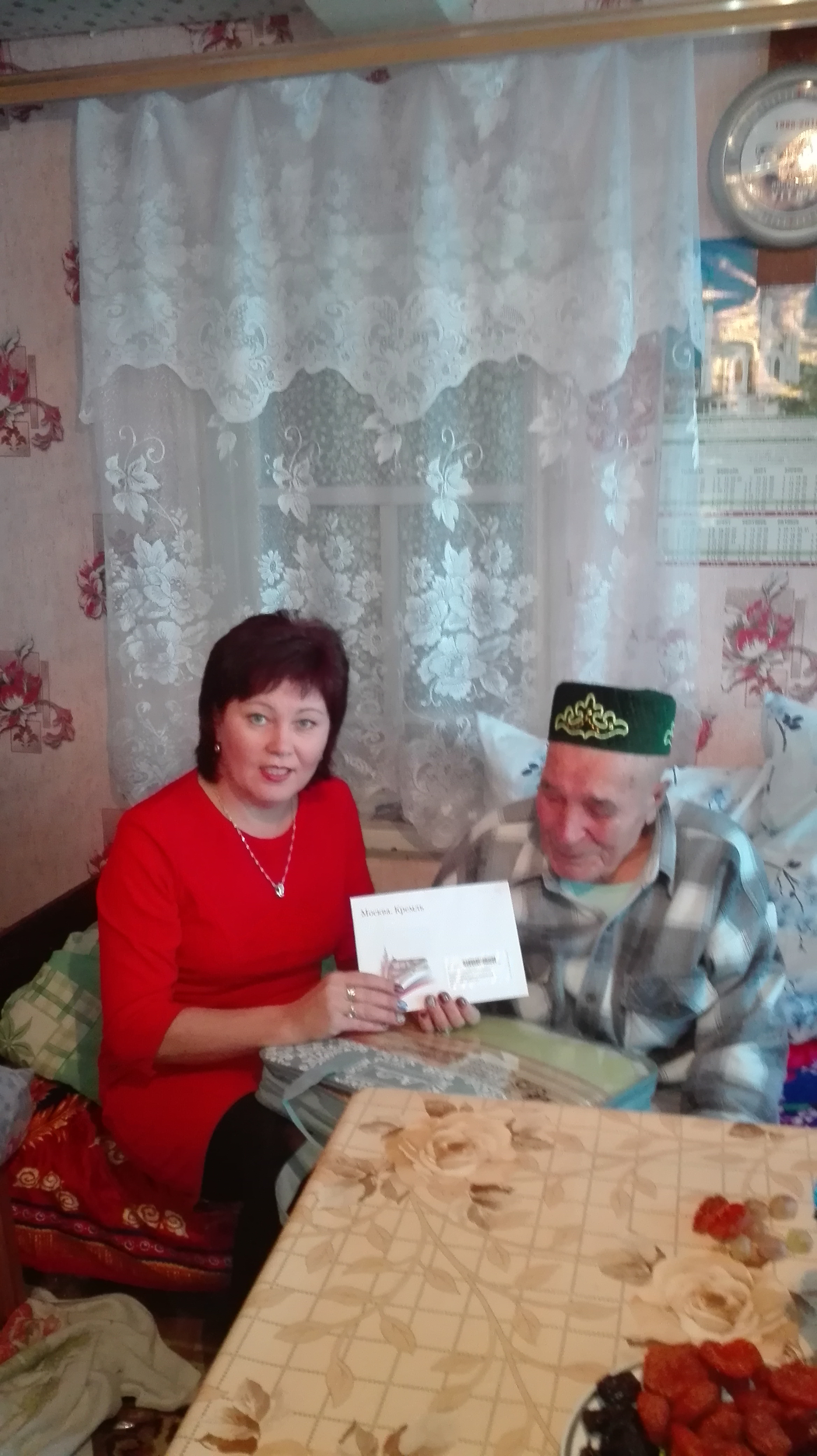 Глава Зай-Каратайского СП Идиятова М.И. поздравила с 90 летним юбилеем ветерана ВОВ Муртазина Нургали и вручила подарок и поздравительное письмо В.В.Путина.