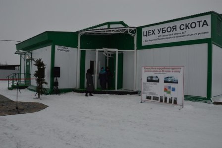15 января состоялось торжественное открытие нового современного пункта по забою скота. Это первый и единственный на сегодняшний день цех в Лениногорском районе. Движение скота в пункте происходит по заданной цепочке. Мощность цеха – 10 голов за смену. Сначала животное помещают в загон, и оно проходит по эстакаде на весы, затем по автоматической линейке продвигается в убойный бокс. Здесь тушу взвешивают, поднимают на специальные крюки, и она продвигается к следующему этапу: на ошкуривание, разрезание и потрошение. Готовое мясо отправляют в охладительный цех, где оборудованы 4 холодильные камеры вместимостью до 10 туш каждая. Есть в цехе и камера хранения биологических отходов, работает лаборатория, которой будет заведовать ветеринарный врач Лина Стенькина. Предусмотрено для животных и помещение для предубойного содержания, реконструированное инвестором из заброшенной фермы.